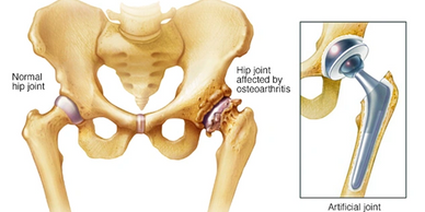 With arthritis, the weight bearing surfaces of the hip joint become worn away. They are no longer smooth and free running and this leads to stiffness and pain as the bone of the thigh bone (femur) grinds on the socket in the pelvis.